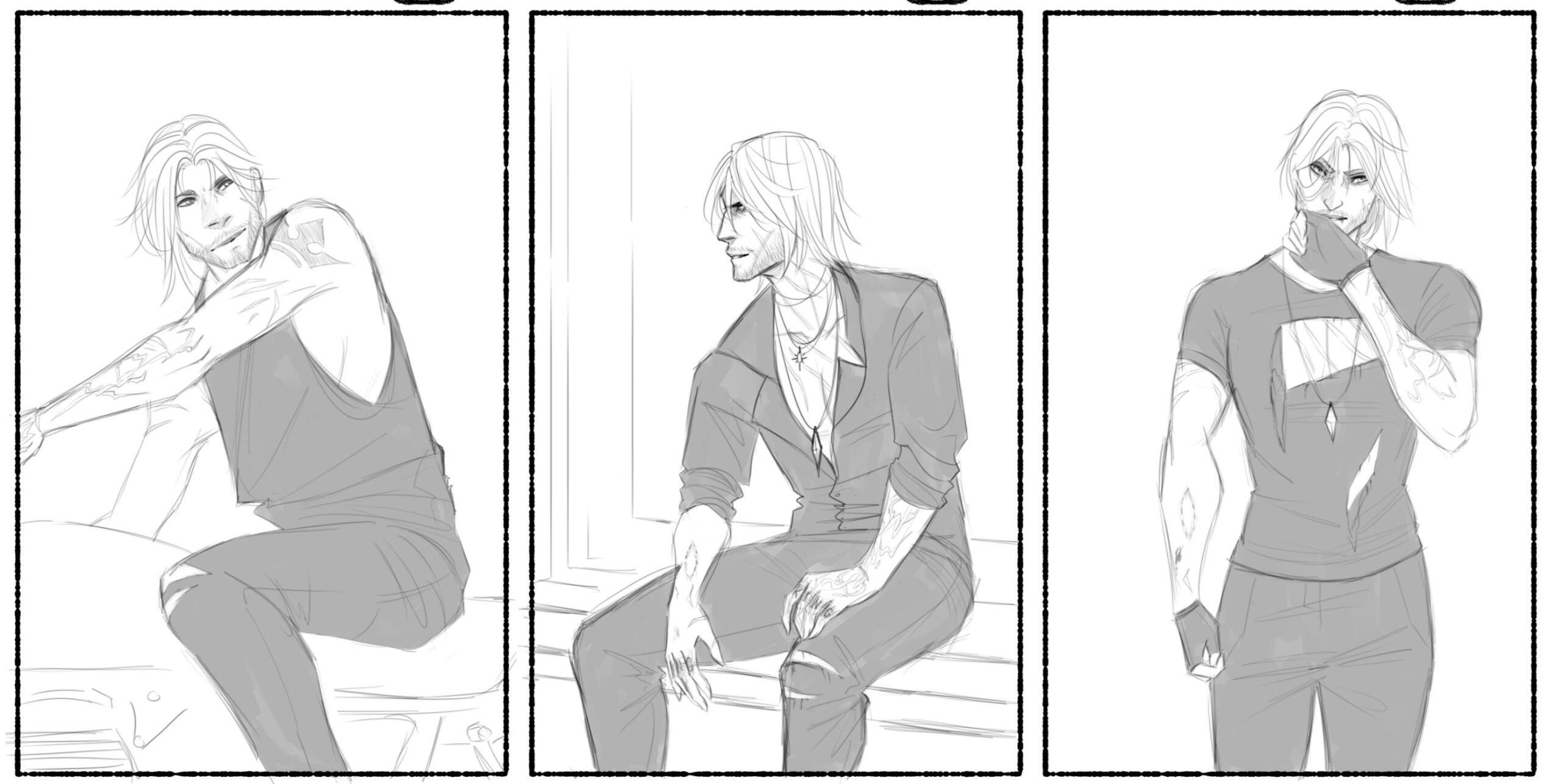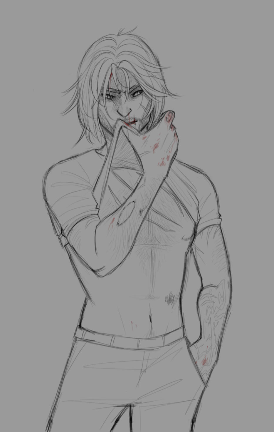 ➤➤ His stomach is also riddled with knife and bullet wounds➤ He has a raspy, ruined voice➤The scent of motor oil clings to him like a bad habit