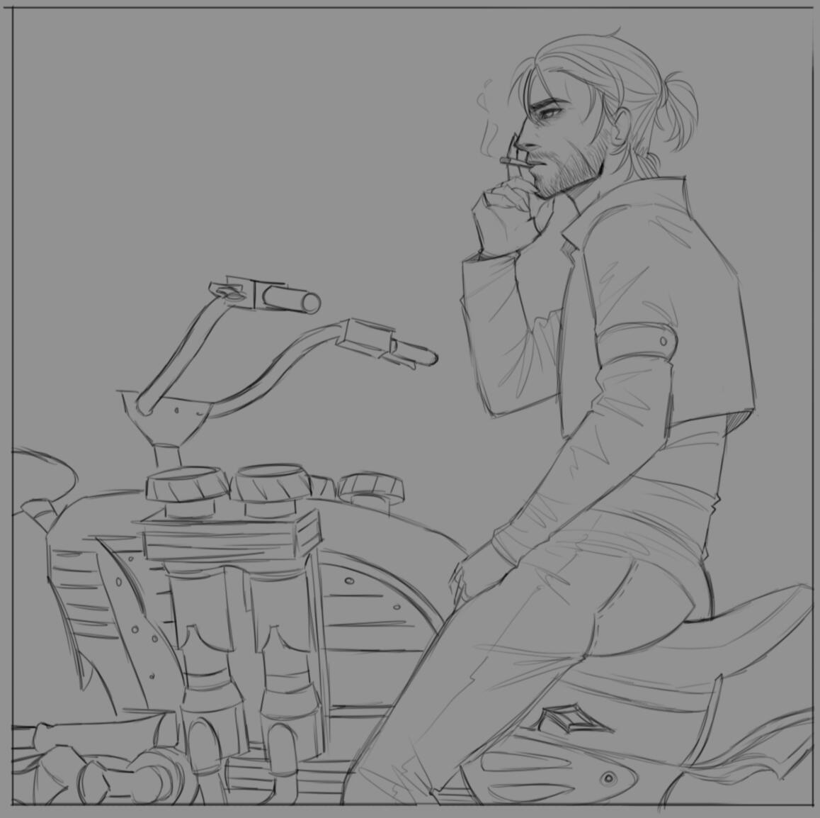 Benem's an asshole.He's usually got a scowl on his face, which matches his default gruff demeanor. Not helpin’ matters neither is the scent of motor oil sticks to him like a bad habit, and if that wasn’t deterrent enough, his gun does its damnedest to make up for it.Despite his cavalier attitude, he's been known to help out when folks really need it. While it seems unlikely, he warms up to folks he takes a liking to - and isn't scared to talk out personal matters with folks in order to help them. He's been there - he don't wanna see anyone else be there.